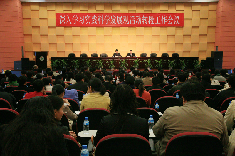 12月10日下午,太阳集团tyc4633召开深入学习实践科学发展观活动试点工作转段工作会议,对学习实践活动的第二阶段分析检查阶段工作进行具体部署。学院党委领导班子成员和全体教职员工参加了工作会议。会议由党委委员、组织人事处处长刘毓主持,党委副书记何锐连做了转段工作动员报告。
