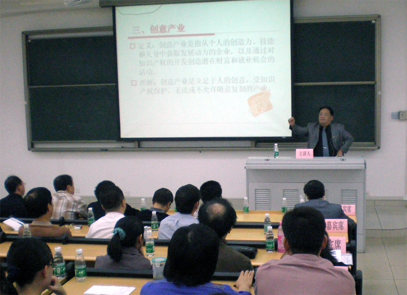 张耀辉教授主要从创意世界、世界的新分工、创意产业、创意经济及其规律、广东创意产业的成功运作、中国的差距、思维变革及广东如何从制造大省向设计大省转变——广东发展创意产业之路等方面对“创意经济与思维变革”这一主题作了深入的讲述。张教授深入浅出的讲述了创意经济方面的理论,还列举迪斯尼、大长今等家喻户晓的生动例子,结合当今世界各国的创意经济实践,分析了中国发展创意经济的现状,提出了广东如何发展创意产业之路的建议,让听众耳目一新。