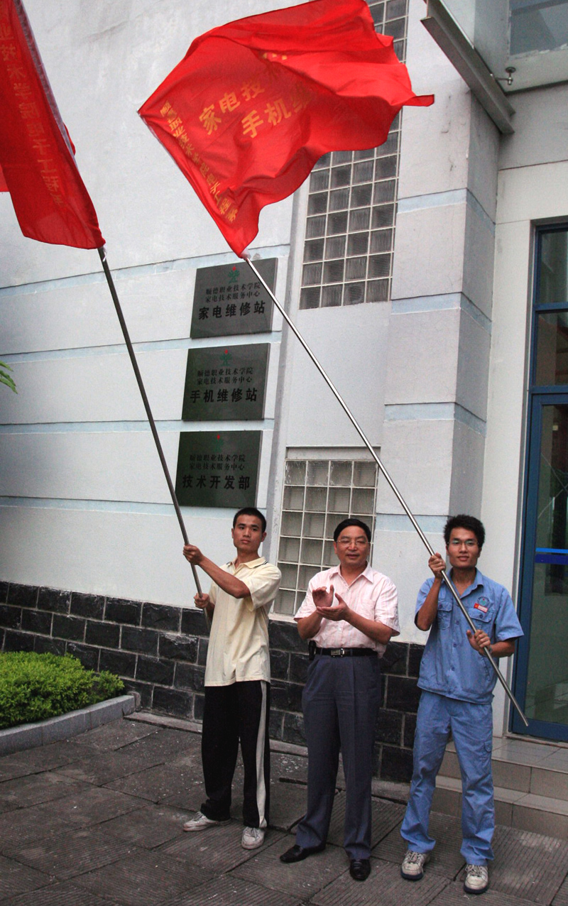 在揭牌仪式上,陈粟宋副院长代表学院对电子工程系在家电义务维修、手机义务维修、家电技术开发等方面所做的工作进行了充分肯定,并鼓励大家在今后的工作中要更上一层楼,对家电技术服务中心的发展提出了要扩大服务范围、增加学生参与机会、组建强大团队、提升服务质量等四点要求和建议。最后,陈副院长代表学院向家电义务维修队、手机维修队举行了授旗仪式,勉励同学们要加强学习,提高实践动手能力和专业才干。