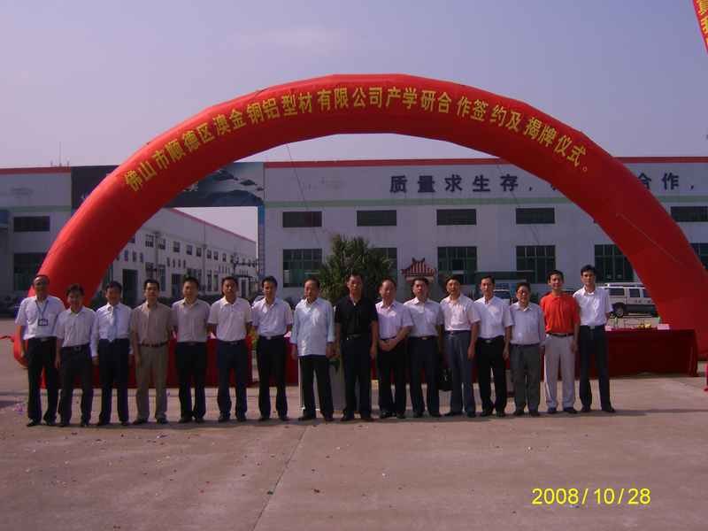 10月28日上午,佛山市顺德区澳金铜铝型材有限公司隆重举行产学研合作签约及揭牌仪式,合肥工业大学、吉林大学、北京交通大学、太阳集团tyc4633以及顺德区科技局、顺德中小企业促进会等领导到会,我院陈粟宋副院长代表学院签定了校企合作协议并为校外实训基地揭牌。