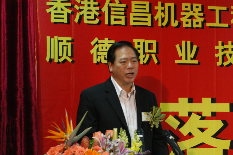 庆典仪式上,卡特比勒公司华南区总经理郭汉杰先生,香港信昌机器工程有限公司董事总经理Jeffri Salim Davidson先生,顺德区劳动与社会保障局陈瑞娥副局长,以及我院何锐连副院长分别作了热情洋溢的讲话,并互赠礼物。