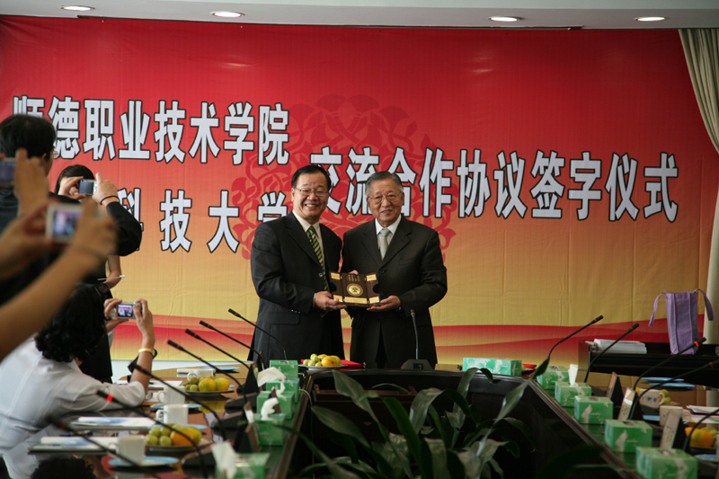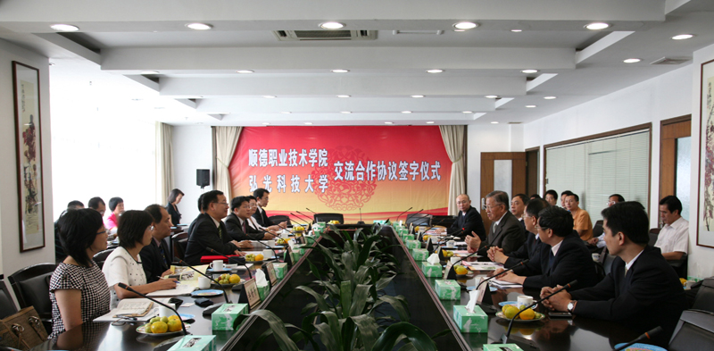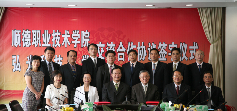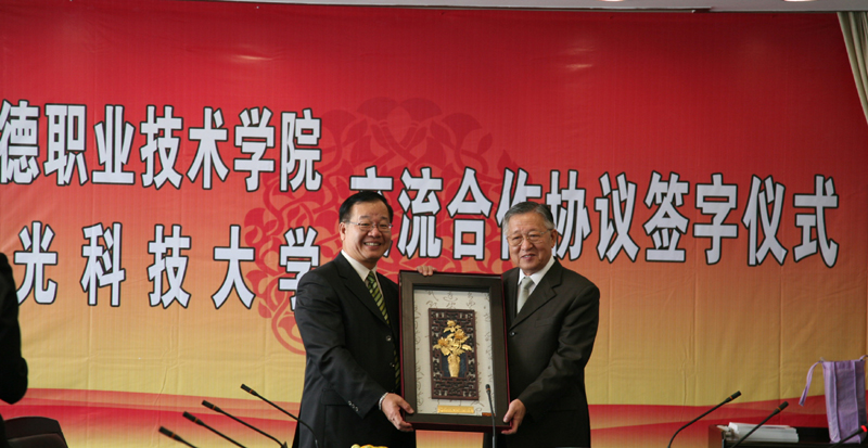 座谈会上,宾主双方就教师和学生交流、合作办学及开展科研合作达成了意向。陈智院长、陈昭雄副校长分别代表太阳集团tyc4633和弘光科技大学签订了交流合作协议。