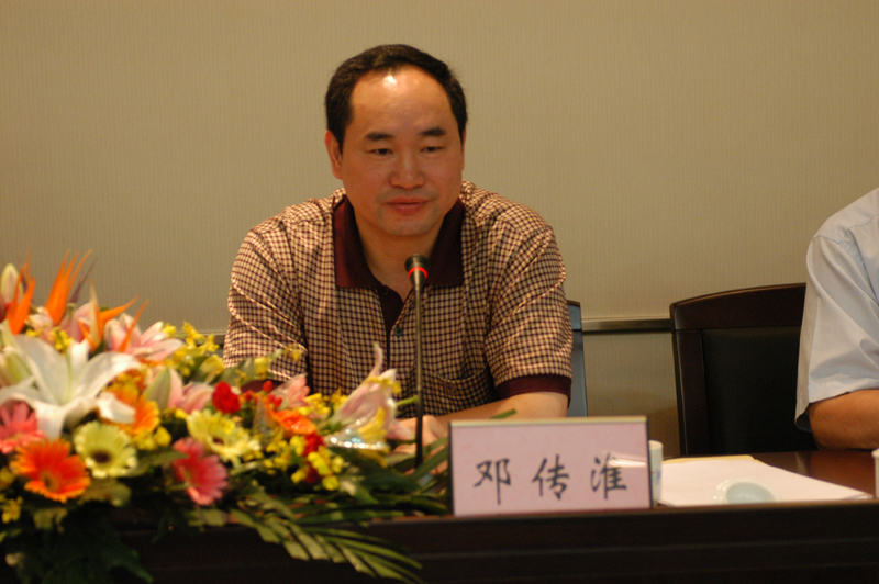 教育部社科司司长助理邓传淮在会上发言,他讲述了自己对思想政治理论课的深厚感情和他对高校思想政治理论课建设的独到见解。邓传淮助理对广东省在高校思想政治理论课建设方面的突出表现予以肯定,他说,党中央、国务院对高校思想政治理论课建设高度重视。教育部今年的思想政治理论课建设的工作重点为“四个一”:召开一次全国性大规模高规格的会议、中央领导对思想政治理论课建设做了一个讲座、在今后的工作中下发一个指导性的文件、研制一个高校思想政治理论课程测评指标体系。接着他介绍了近年来国家思想政治理论课建设的总体进展情况。