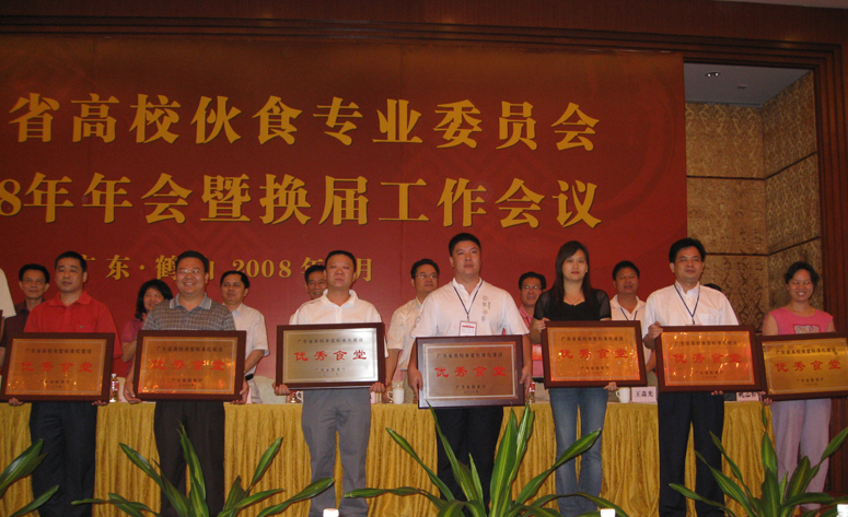 7月2日-4日,广东省高校伙食专业委员会2008年年会暨换届工作会议在鹤山市召开。在省高校伙食工作总结表彰暨颁奖大会上,我院竹苑食堂、荷苑食堂被授予“广东省高校优秀食堂”称号,鼎瀛物业管理有限公司被授予“广东省高校伙食工作先进集体”称号。