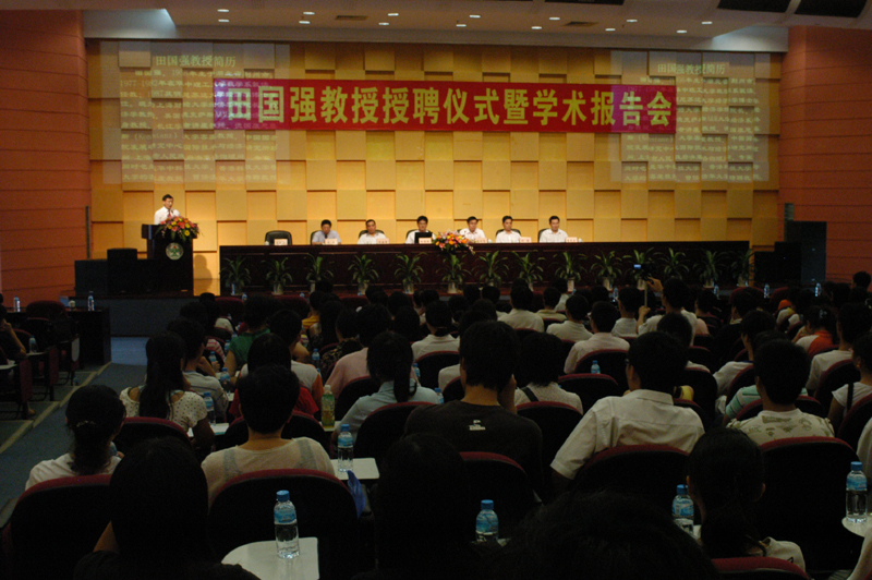 7月11日,教育部长江学者、美国德克萨斯农工大学经济系终身教授、上海财经大学经济学院院长、博士生导师田国强,从党委副书记邹时智手中接过聘书,欣然受聘为我院客座教授。随后,田国强教授院作了《中国改革开放30年的回顾与展望:从拨乱反正、市场体制建设到和谐社会构建——效率、公平与和谐发展的关键是合理界定政府与市场的边界》的讲座。学院纪委书记谭谦章、组织人事处处长刘毓和300多名师生聆听了报告。经济管理学院院长高新和主持了报告会。