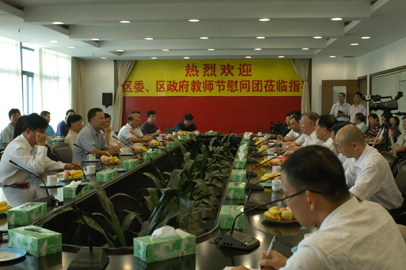9月9日,时值我国第24个教师节来临之际,由区委副区长王干林带队的区委、区政府、区人大、区政协慰问团与我院院长陈智,副院长何锐连、邹时智、罗勇武,纪委书记谭谦章,组织人事处刘毓处长,学院办公室徐刚主任以及部分中层干部举行了座谈会,亲切慰问我院教职员工,并对我院工作进行了指导。