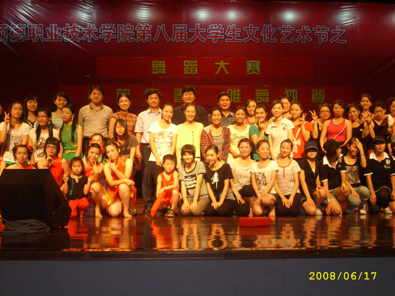 6月17日晚,由学生处、院团委主办,人文教育系承办的第八届大学生校园文化艺术节之“绽放青春,唯舞独尊”舞蹈大赛在梁球琚礼堂举行,共有9支队伍参赛。院团委张业华副书记、人文教育系陈建华主任、人文教育系党总支訾文良书记、人文教育系杨毅路副主任、院团委及各院系老师出席了本次大赛。本次大赛还特邀佛山市顺德区舞蹈协会理事、容桂舞蹈协会副会长王苏、广东省舞蹈家协会会员肖美纯等老师作为评委。人文教育系04(2)班的参赛节目《奔向2008》脱颖而出,获得一等奖,人文教育系04(1)班的陈倩华同学获得最佳个人表现奖。