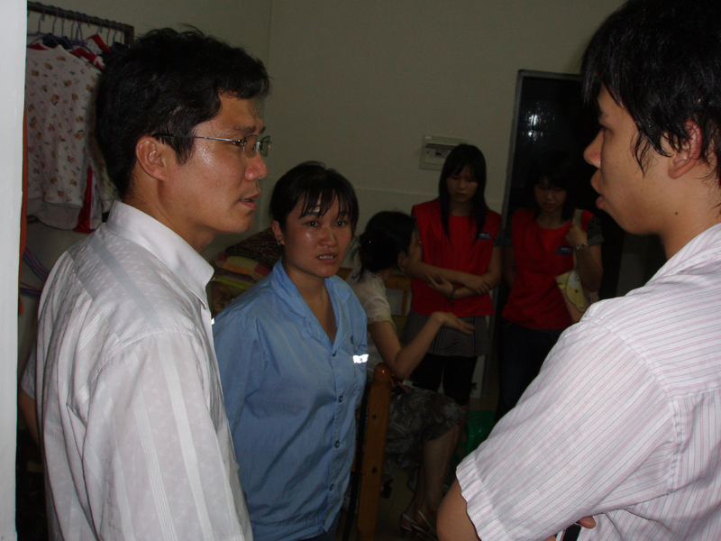 原来,在广东顺德打工的四川彭州籍工人张旭华夫妇,在地震发生后第二天就在公司总经理陈懋台的全力支持下飞回老家寻亲 。震后家中的房子基本都倒塌了,所幸家人都平安。由于9岁的儿子杜常坤至今难以走出地震的阴影,她只好先把小孩都带到顺德来。