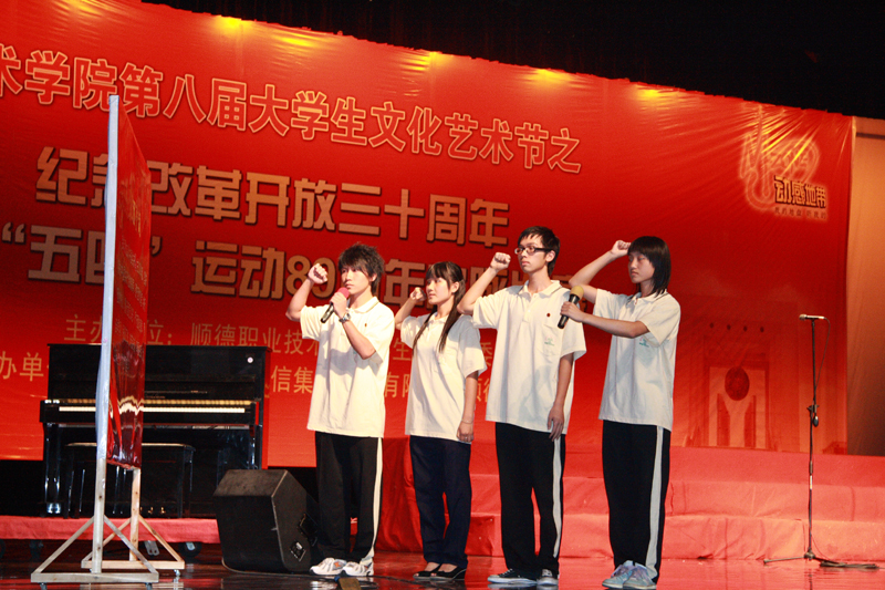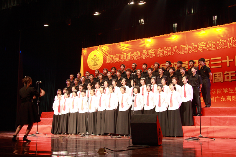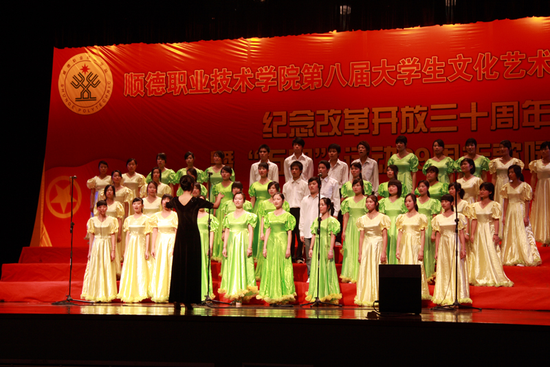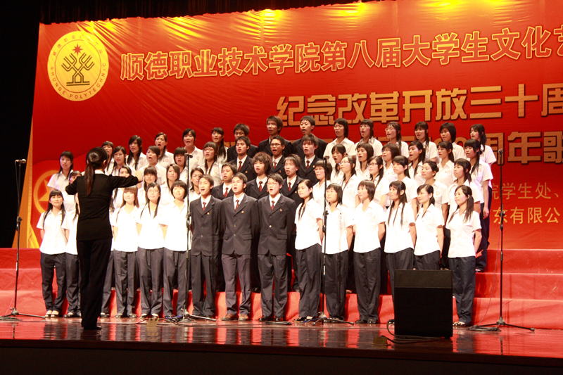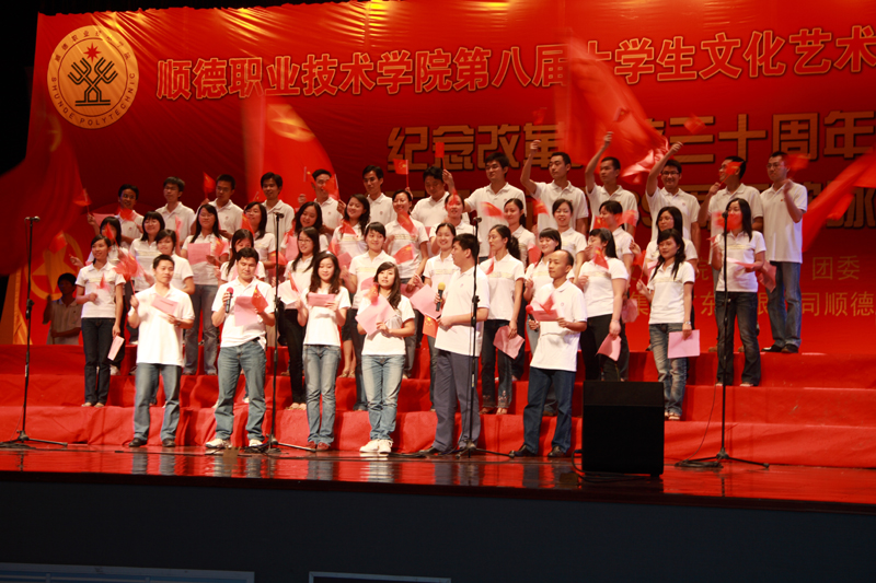 2008年5月11日晚,太阳集团tyc4633的广大团员青年们相聚于梁銶琚礼堂,参加了由学生处、院团委主办的以“改革开放30周年,情系祖国赤子心;传承五四薪火,构建和谐顺职”为主题的歌咏比赛活动。经过激烈角逐,人文教育系代表队获得一等奖,经济管理学院、外语系代表队获得二等奖,:医学系、计算机技术系、机电工程系获得三等奖,外语系、艺术系、机电工程系获得最佳组织奖。