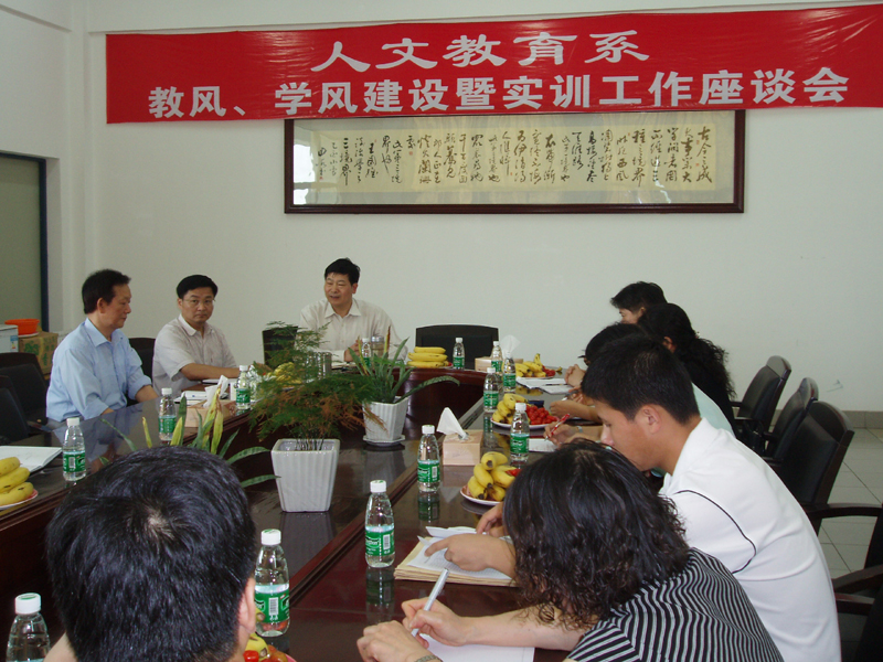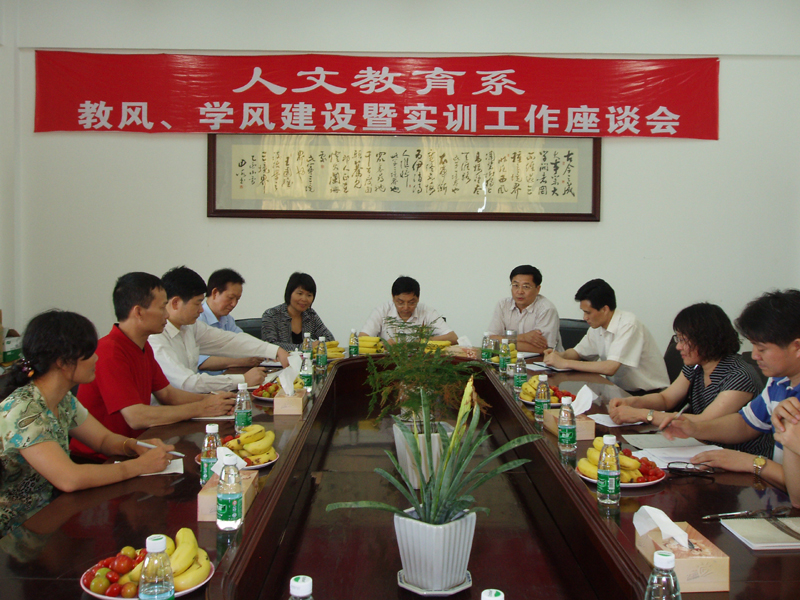 5月13日,人文教育系组织召开教风学风建设暨实训工作座谈会。副院长陈粟宋,督导室田兵教授,教务处副处长张斌,思想政治理论部副主任李霞,人文教育系主任陈建华、书记訾文良、副主任杨毅路,校外实训基地逢沙小学校长何彩珍及校外实训指导老师代表,我院相关教师和参加实训的初等教育专业04(2)班学生代表参加了会议。