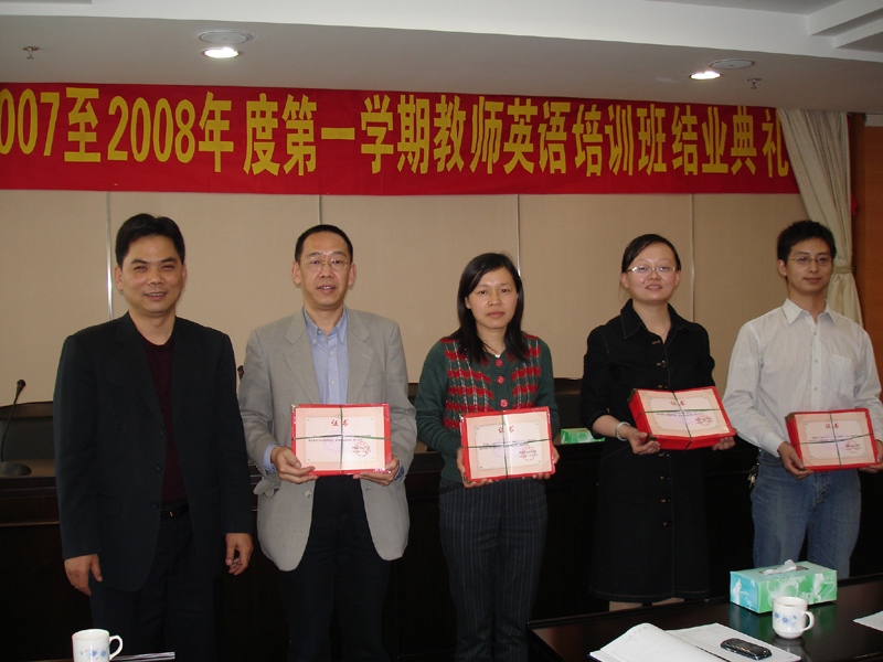 3月12日,太阳集团tyc46332007-2008学年度第一学期中青年教师英语培训毕业典礼举行,学院党委委员、组织人事处处长刘毓,组织人事处副处长朱杰等与56名教师一起分享了获得结业证书的快乐。