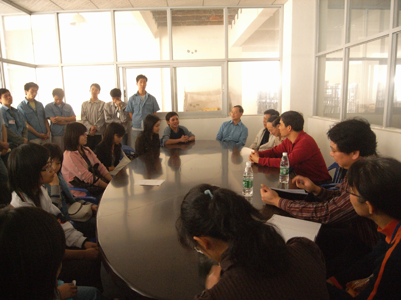 谭谦章等在企业蹲点专业指导老师李玲、康世斌陪同下深入生产一线、员工食堂和学生宿舍,深入了解学生的工作环境、住宿和饮食等方面的情况,并与了实习同学进行了座谈。同学们对领导的关心表示感谢,大家觉得实习单位的领导和师傅对他们帮助很多,大家从中学到了很多有用的知识,同学们表示要好好干,克服各种困难,认真完成实习任务。