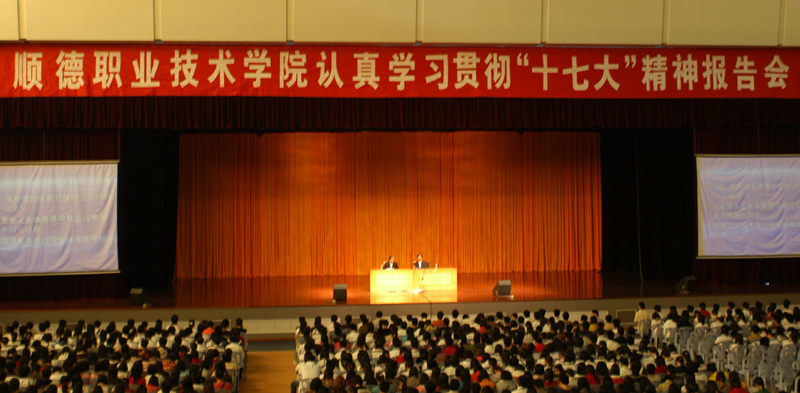 2007年10月15日—21日,中国共产党第十七次全国代表大会隆重召开,这是我们党在我国改革发展关键阶段召开的一次十分重要的大会,是一个辉煌的里程碑,是中国发展的一个新起点。认真学习、广泛宣传、积极贯彻落实十七大精神,是当前和今后一个时期的首要政治任务,也是大学生本学期《形势与政策》课的非常重要的教学内容。为帮助广大学生认真学习领会十七大精神,进一步掀起学习贯彻十七大精神的热潮,切实把思想和行动统一到我们的工作和学习实际上来,在教务处、学生处、总务处和信息中心协助下,11月28日下午和晚上,思想政治理论课教学部举办了由佛山市委学习党的十七大精神宣讲团成员、我院人文教育系訾文良书记所做的《深入学习理解十七大精神》、由佛山市委学习党的十七大精神宣讲团成员、我院人文教育系陈建华主任所做的《深刻学习领会十七大精神实质》和华南师范大学十七大报告宣讲员、华南师范大学政治与行政学院副教授唐昊博士所做的《解读十七大》三场专题报告会。