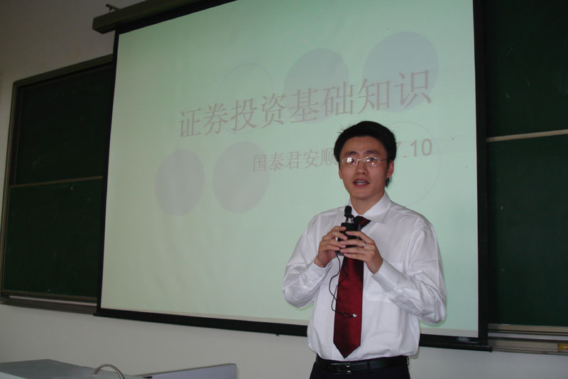 学院组织财务管理协会和电子商社的学生干部张贴海报、派发传单、在人员集中的地方设点等多种形式宣传。同学们都表现出了浓厚的兴趣,两天内报名人数达600多人,比赛于10月24日正式开始。当天下午国泰君安公司业务经理雷巍先生为同学们举办了一场题为“证券投资基础知识”的讲座,为同学们参加比赛打下了良好的专业基础。该项目开赛一周以来,累计报名人数达980人。本比赛将每2周公布一次前10位的名单。