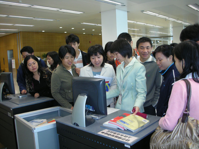 在深图工作人员的陪同下,我馆员工进行了全面性的参观和部门间对口交流,着重了解了该馆采用的DILAS(数字图书馆体系结构研究和应用平台开发项目)系统和RFID(无线射频技术)在图书馆中的应用,深图工作人员为我们演示了利用RFID技术进行书刊自助借还、自动定位上架的操作。此外,对于特色资源建设、专题服务、视听服务、流通服务、期刊管理等方面,也进行了有益的交流和学习。