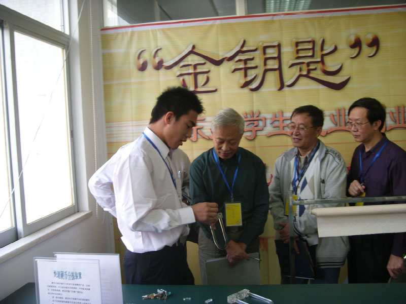 11月24日,由团省委、省人事厅、省教育厅、省劳动与社保厅、省国资委、国开行广东分行、省中小企业局主办,共青团汕头大学委员会、汕头大学工学院承办的“金钥匙”广东大学生就业创业才艺大赛之机械电子设计竞赛决赛在汕头大学隆重举行。由我院机电工程系选派的三个作品参加了此次大赛,并获得了一银两铜的好成绩:06数控1班潘帼珊同学的《快速硬币分拣器》荣获二等奖、05机电2班苏嘉亮同学的《自行车防盗装置》和06机电1班郑顺昌同学的《筷子自动弹出装置》荣获三等奖。