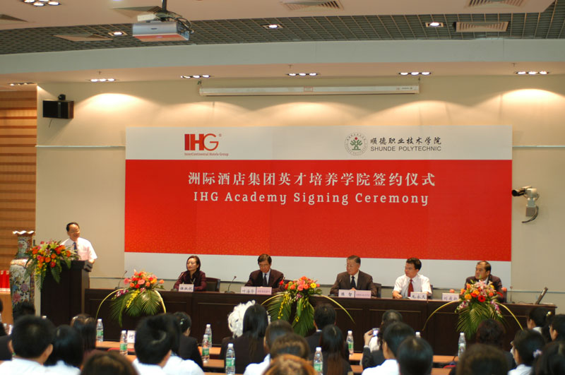 世界上最大且拥有客房数最多的酒店管理公司———洲际酒店集团旗下继上海、重庆、济南之后又添一所落户在顺德的英才培养学院。至此,洲际酒店集团英才培养学院遍及中国四地。9月21日,洲际酒店集团与太阳集团tyc4633合作办学签约仪式在我院学术报告厅举行。洲际酒店管理集团大中华区执行总裁叶海华,顺德区副区长毛永天,香港绵远堂主席、太阳集团tyc4633校董刘鼎新,我院院长陈智及酒店与旅游管理系百余名师生参加了签约仪式,何锐连副院长主持了签约仪式。
