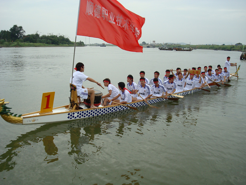 龙舟竞渡在顺德有着悠久的历史,深受广大群众喜爱,并形成了独具特色的民俗文化。在数百年发展过程中形成“团结拼搏、奋勇争先”的龙舟精神,已成为顺德人精神的典型载体。作为顺德区唯一的高等学府,学院在注重学生日常行为教学的同时也很重视对学生进行传统民俗文化的灌输与熏陶,所以学院非常重视此类活动。在区文体局的统一安排下,我院组织60多名师生进行为期20天的紧张集训。学院纪委书记谭谦章、学生处处长陈曦和机电工程系党总支书记李玉春等领导更是多次亲临训练现场指导工作。