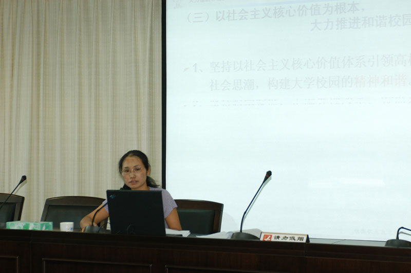 9月19日,我院党委召开了本学期第一次党委中心组政治学习,由人文教育系李霞老师作《以社会主义核心价值为根本,大力推进和谐文化与和谐校园建设》的专题讲座。院领导陈智、邹时智、陈粟宋、刘毓、徐刚和全体中层干部参加了学习。院办主任徐刚主持了会议。