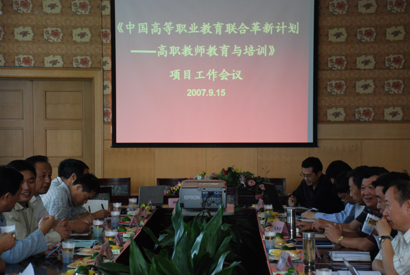 会议的主要内容是落实教育部办公厅《关于组织实施“中国高等职业教育联合革新计划——高职教师教育与培训”项目的通知》(教高厅函[2006]32号)文件的精神,总结2007年项目开展的情况,部署项目的结题工作。专家委员会副主任上海第二工业大学副校长朱懿心教授、北京师范大学教育技术学院教育与技术研究所赵志群所长分别主持了上下午的会议。