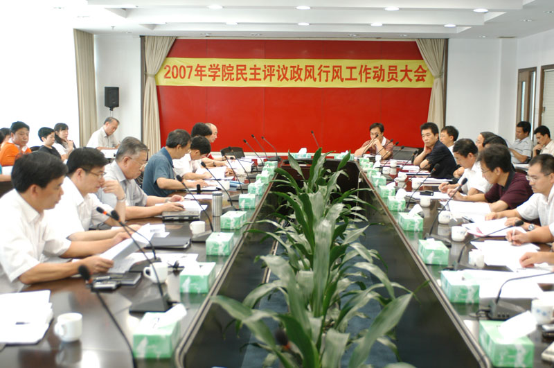 7月18日下午,学校在行政楼1508会议室召开了2007年学院民主评议政风行风民主工作动员大会。校领导陈智、邹时智、罗勇武、陈粟宋、谭谦章、刘毓、徐刚和全体中层干部参加了会议。会议由纪委书记谭谦章主持。
