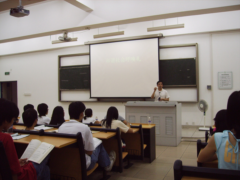 谭书记讲述了 “和谐社会”的内涵与礼文化的实质,从现今社会存在的与“礼”不相容、不协调的现象,如旅游、交通、个人行为、饮食消费、人际关系等方面,说明随着经济的快速发展,社会更加需要“礼”。谭书记还通过“大学生十大不文明行为”和“校园文明行为”图文并茂地做出对比,引起同学们的共鸣和深思,勉励同学们要积极传承礼乐文化,大力弘扬礼乐文化,自觉践行礼乐文化,全力投身到和谐校园建设的伟大实践中去,努力做一个诚信的人,明礼的人,具有高尚道德和情操的人。