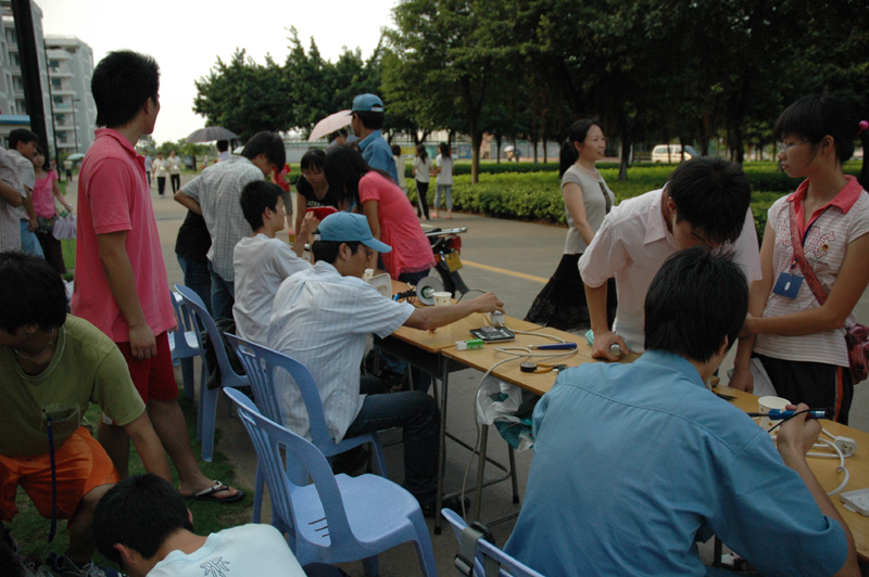电子工程系第三届电子科技文化节开幕式暨家电义修活动于6月20日下午4点在未名桥头正式拉开帷幕。此次科技节以“勇于创新 自觉实践 开创未来”为主题,旨在通过活动让大家更加积极地参与到科技创新的实践中去,在实践中不断提高科技文化素养。活动包括智能小车控制大赛、焊接电路板大赛、开放实训室、企业参观、科技学术讲座、家电义务维修、科技节成果展等,这些系列活动将持续到2007年11月份。