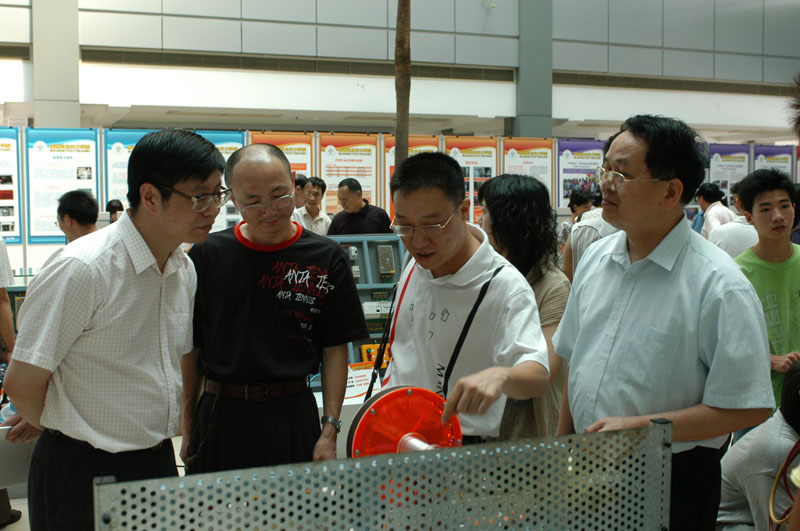 6月20日下午,由教务处组织的“太阳集团tyc463307届毕业设计(论文)作品展”在学院图书馆一楼大厅举行。校领导何锐连、邹时智、罗勇武、陈粟宋、谭谦章、徐刚、刘毓,教学顾问黄纯颖教授,行政顾问张益教授,学校督导,中层干部,专业负责人,学生代表,学生处和教务处全体人员共计400多人出席了毕业设计作品展开幕式。美的商用空调产品测试经理舒卫民先生应邀参加了开幕式。