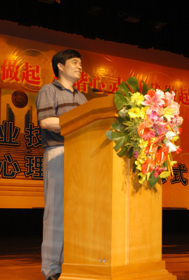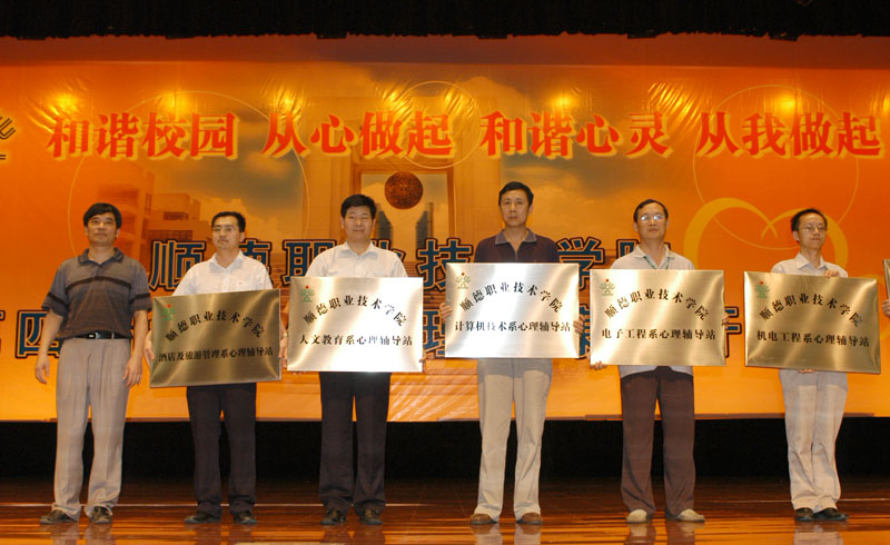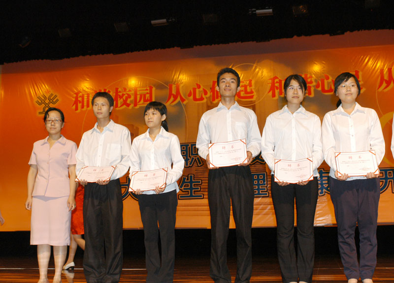 本次活动围绕“和谐心灵从我做起,和谐校园从心做起”这一主题,对近几年我院对外树形象,对内求质量取得的一系列可喜的成果进行了回顾总结,谭书记为已设立心理辅导站的七个院系进行了正式授牌,并对他们提出了殷切的期望。陈曦处长和院团委张业华副书记也为新一届院心理健康协会的干部颁发了聘书。医学系的同学更是以他们精彩的手语表演“从头再来”深深地打动了每个在场观众的心。团体心理辅导专家、广东纺织职业技术学院陈珩老师通过团体心理辅导让同学们懂得了生活中有了信任才会快乐!