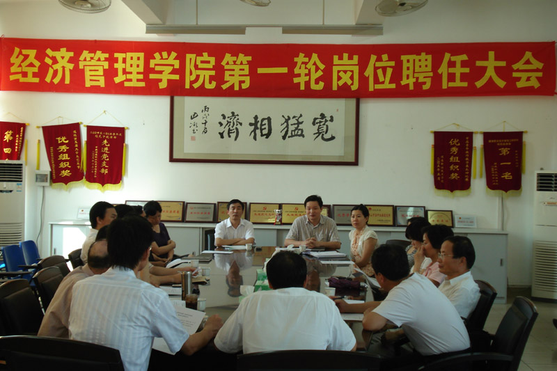 会议由经济管理学院总支部委员会书记曾庆云主持,经济管理学院院长高新和同志依据学院党委的要求,就经济管理学院的第一轮岗位聘任工作做了具体安排。