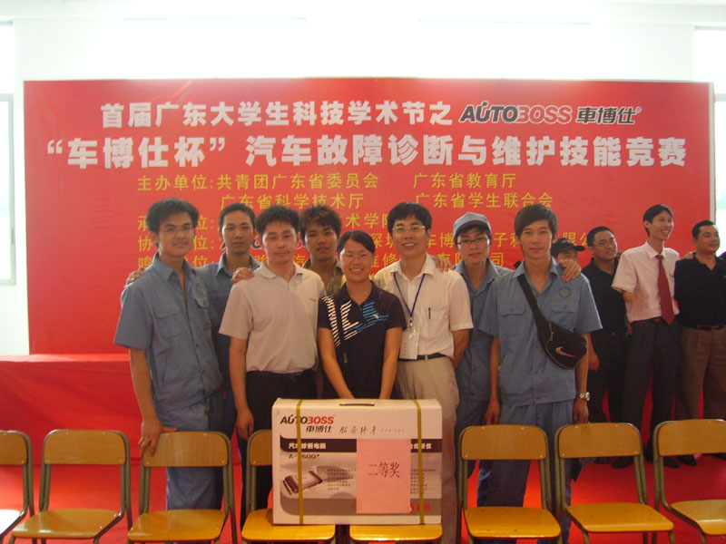 由团省委、省教育厅、省科技厅、省学联主办,广东省交通职业技术学院承办的首届广东大学生科技学术节汽车故障检测分析与保养技能大赛于6月2日举行。我院机电工程系汽车检测与维修技术专业参赛队以第3名的优异成绩荣获二等奖,获得价值17,800元的车博仕A-2600汽车诊断电脑一台。