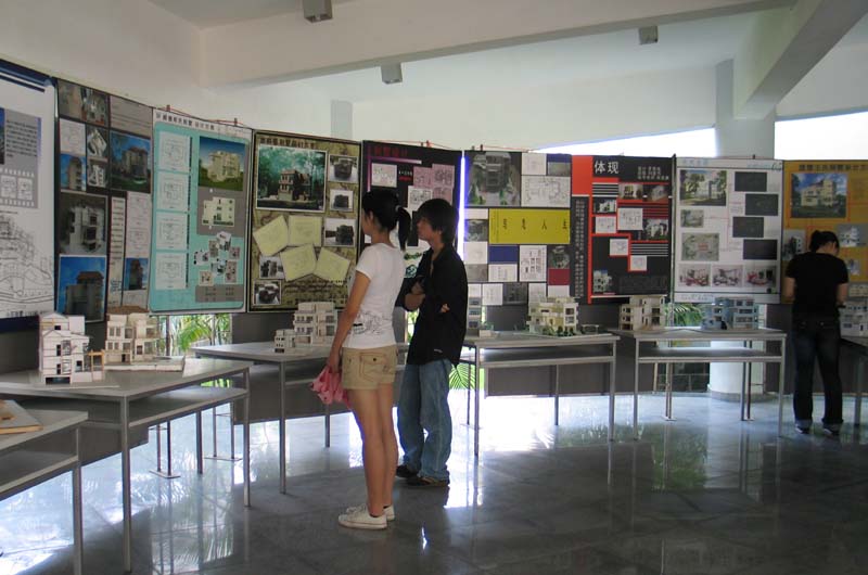 《建筑设计基础》课程设计作品展15日开始在艺术设计系艺术楼首层展厅举办,共展出了28幅05室内班同学的建筑设计作品及同学们精心制作的模型。