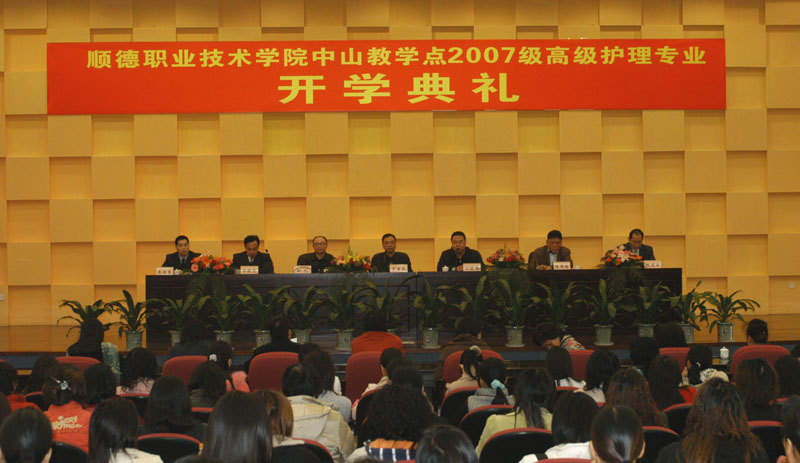 4月8日,我院中山教学点2007级高级护理专业开学典礼在我院学术交流中心一楼报告厅举行。中山市科学技术协会副主席刘延玉,中山新华科技学院院长陈伟楷,我院副院长罗勇武,办公室主任、医学系主任徐刚,继续教育部主任齐振彪、副主任王法勇,医学系副主任陆建林及2007级高级护理专业全体新生参加了开学典礼,典礼由继续教育部主任齐振彪主持。