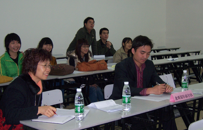 为落实学院通专结合的人才培养模式,加强与行业、企业交流,4月6日下午,酒店及旅游管理系在学院成功举办了校企合作交流会旅行社专场,来自顺之旅、禅之旅、广之旅、口岸、上游、康辉、中旅、同乐等8家佛山、顺德的主要旅行社的总经理和部门经理莅临我院,我系师生在陈健主任、董国顺书记、梁王巧云博士的带领组织下与企业嘉宾展开了友好的交流和沟通,交流会现场气氛热烈。
