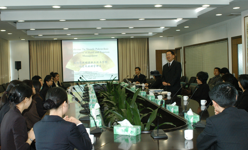 为落实学院通专结合的人才培养模式,进一步发挥国际交流与合作优势,拓展境外实习基地建设工作,4月11日,酒店及旅游管理系成功举办了校企合作交流会国际酒店企业专场,美国HTMC酒店管理公司、香港怡东酒店、澳门英皇娱乐酒店、香格里拉酒店集团等众多国际酒店企业特派高层管理人员,我院副院长何锐连,酒店及旅游管理系主任陈健、书记董国顺与诸多国际酒店企业代表进行了座谈,并代表学院赠送了纪念品。