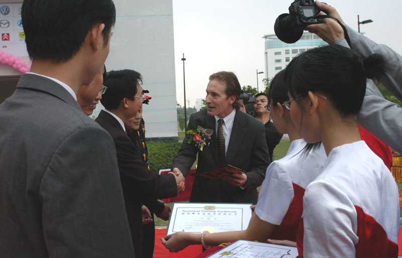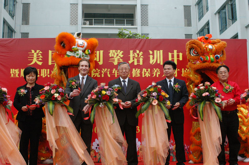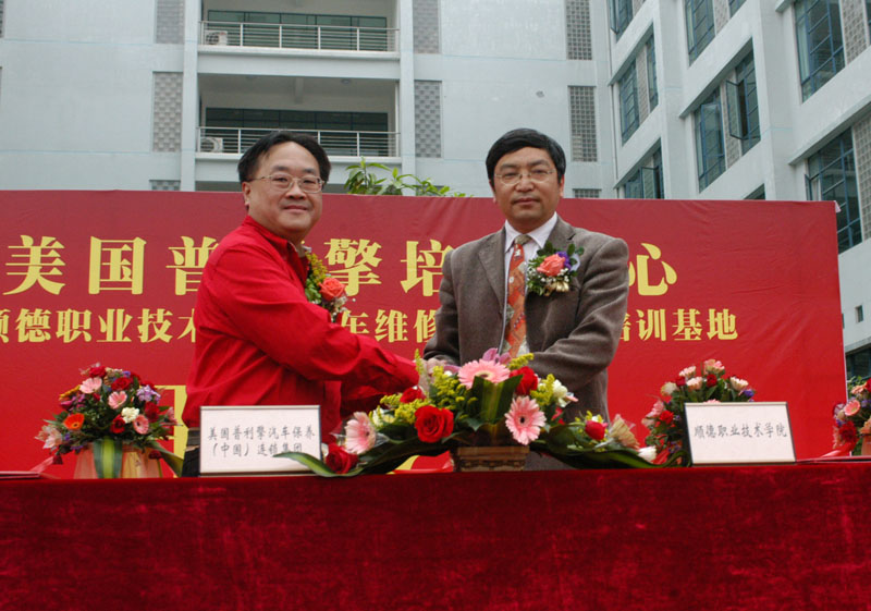 陈智院长致辞中说,美国普利擎培训中心与我院汽车维修保养人才培训基地的建立标志着我院工学结合又迈上一个新的台阶。将引进的美国汽修行业先进技术、完善的管理模式和全新的服务理念,对内可以提高学生参与实践和提高技能,对外可为顺德地区汽车维修行业相关人员进行培训和提高汽车维修和保养服务的标准水平,将为顺德地区汽车维修行业培训更多的专业高技能人才,促进本地区乃至周边地区汽车维修行业的健康发展。