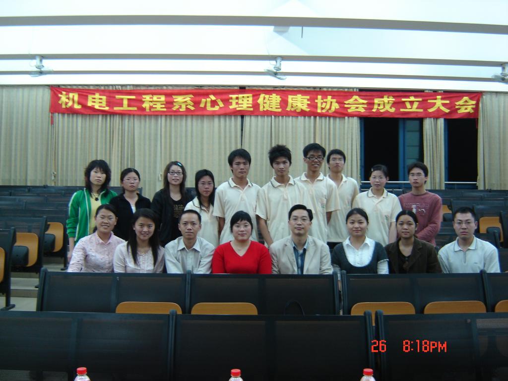 3月26日,我院首个系级心理健康协会在机电工程系成立。机电工程系党总支李玉春书记,院心理咨询中心袁一平、李怡和、朱娉婷,外语系黄日安,计算机系罗美玲等老师出席了本次大会。