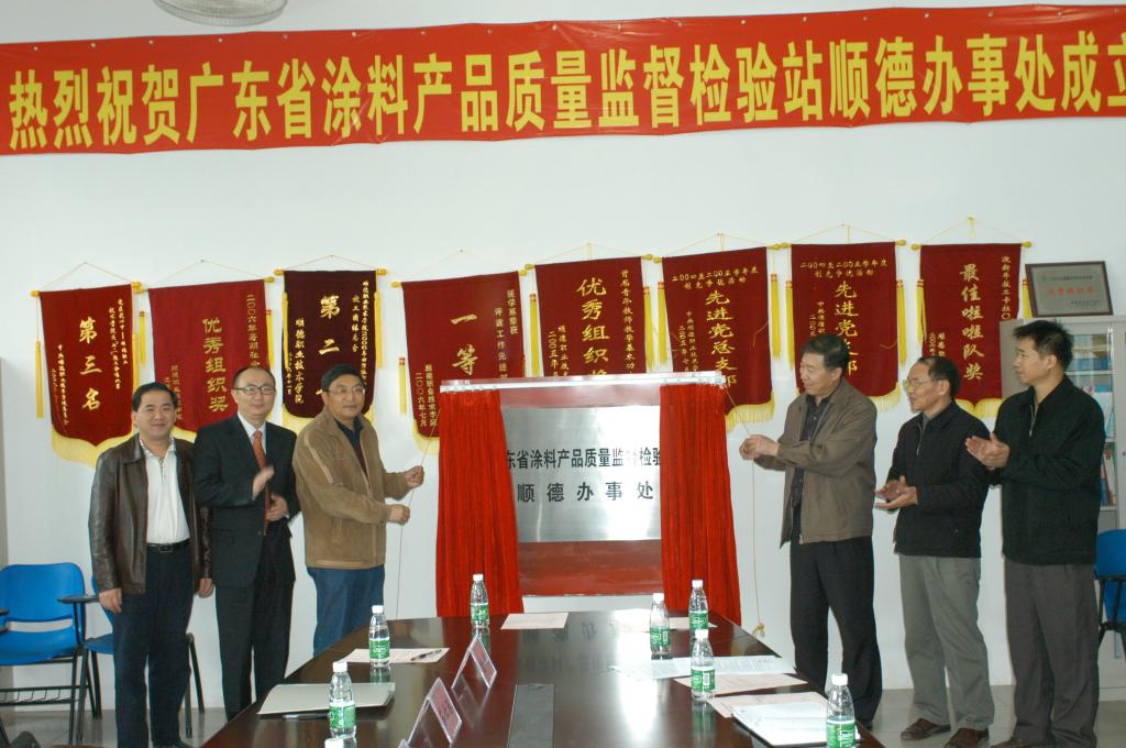 1月18日,广东省涂料产品质量监督检验站顺德办事处挂牌仪式在我院医学系举行,广东省涂料产品质量监督检验站站长、广州合成材料研究院副院长杨育农一行3人与我院陈粟宋、徐刚、刘晓顺等为办事处揭牌。