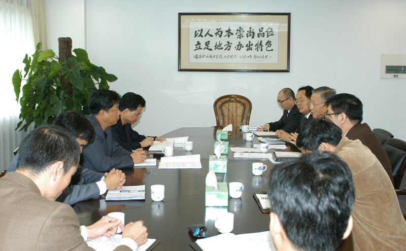 12月14日,顺德区毛永天副区长、教育局陈锡钊局长来我院考察。毛永天副区长、陈锡钊局长在认真、仔细听取陈智院长对学院十五期间的办学成绩和十一五发展目标的汇报之后,就有关事宜与我院领导交换了意见。何锐连、邹时智、陈粟宋、谭谦章、刘毓、徐刚等院领导参加了座谈。