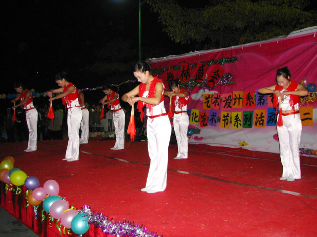 12月27日下午和28日晚,由学院团委主办、艺术设计系学生会承办的艺术节之“OPEN DAY”活动分别在宿舍区及灯光球场举行。此次活动以展示艺术设计系专业项目与特点为主,以文娱活动为辅,目的是让各多的同学了解艺术设计系及相关专业,增进与其他系的交流,比如有习作展览、现场为同学画速写肖像,写书法作品等等;以“舞林盛会”为主题的晚会则为大家送上精彩的民族舞、现代舞、交谊舞和街舞等,现场反应热烈。