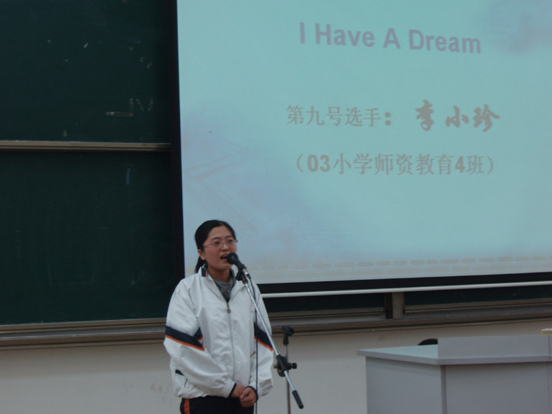 经过初赛,有来自全院各系23名的选手进入了决赛。决赛由两部分组成:自由演讲和现场问答。4分钟主题演讲选手主要围绕My College Life、My Dream和 My Plan 等主题,之后回答来自外教就演讲内容提出的问题。在演讲中,选手们有谈学院丰富多彩的大学生活、有展望未来、也有模仿马丁·路德·金的《我有一个梦想》的演讲。他们的演讲声情并茂,语言流利,表现镇定;问答环节体现了选手们活跃的思想,精彩的回答得到了评委的肯定。