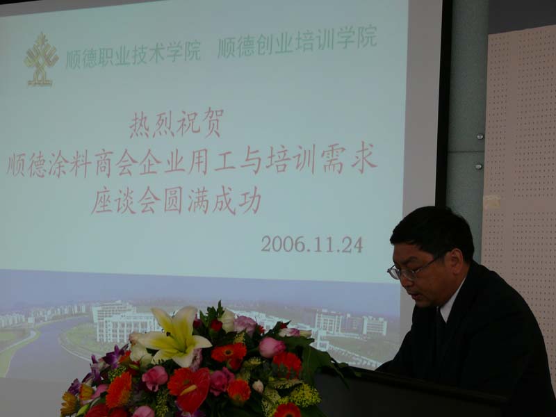 涂料行业是顺德区的重要支柱产业之一,为了给顺德涂料行业做好技术支持以及培养和输送更多优秀人才,加强与行业协会的合作,了解企业的用工与培训需求,11月24日,顺德涂料商会会员企业用工与培训需求座谈会在我院举行。我院副院长陈粟宋,顺德涂料商会名誉会长胡景钊、秘书长陈观其,创业培训学院院长助理郑兆志,医学系副主任陆建林、应用化工技术专业负责人周强、相关专业老师以及顺德涂料商会30多家会员企业的人力资源部负责人出席了座谈会。