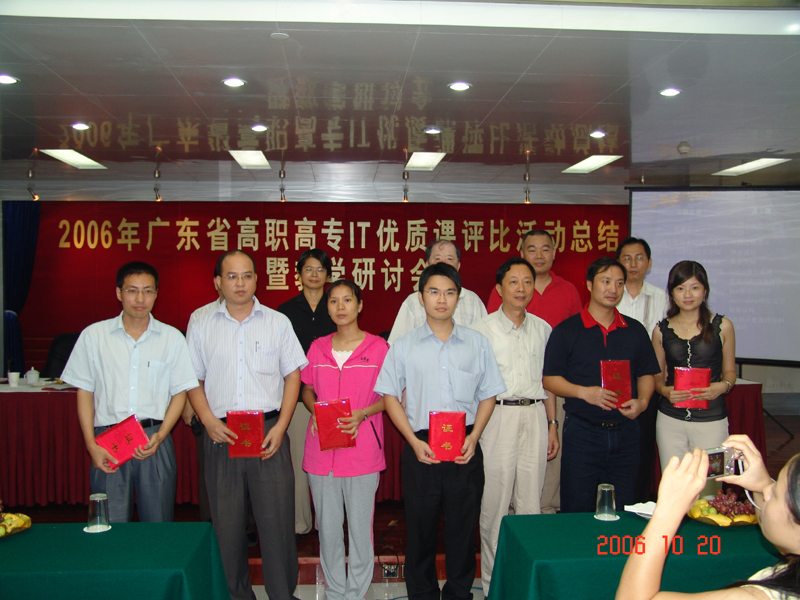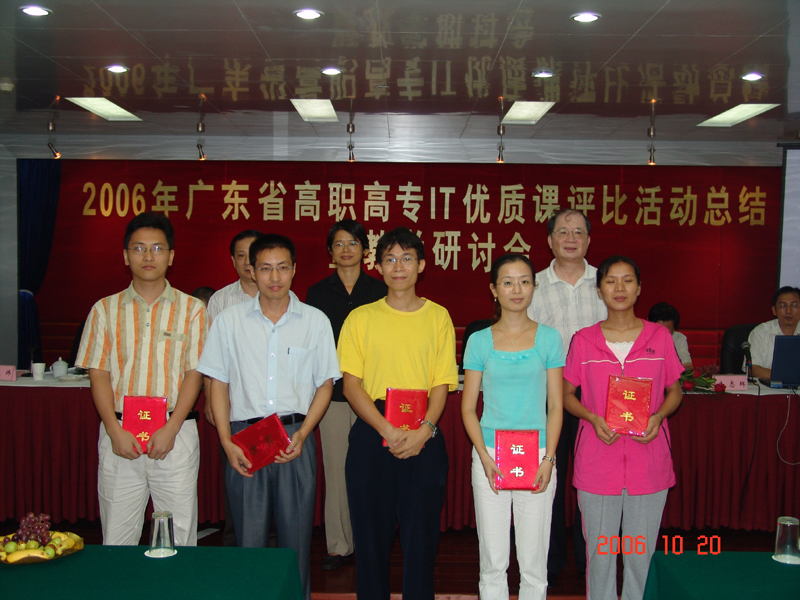 10月20日,在深圳信息职业技术学院举行举行的“2006年广东省高职高专IT优质课评比活动总结会议”,我院计算机技术系罗曼老师、朱义勇老师分别荣获2006年广东省高职高专IT专业优质课比赛的一等奖和二等奖。