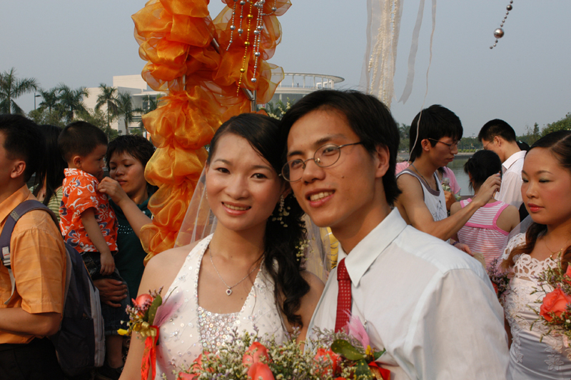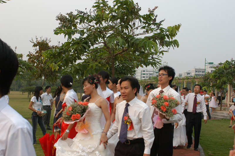 陈文海、肖薇薇是先同学后夫妇,肖奇民老师、杨韵老师的配偶也为其同学,多年的青葱岁月为他们的爱情奠定了深厚的基础,今天许多他们的同学借他们的婚礼来了一个同学大聚会,笑脸和祝福洋溢在新婚夫妇和他们同学周围。