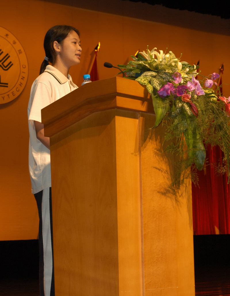 学生代表陈金凤代表全体贫困生向资助企业和热心人士表示感谢,并表示一定不会辜负社会和学院对他们的关怀和良苦用心,他们会怀着感恩之心,以实际行动来回报企业、热心人士和学院的关心与帮助。