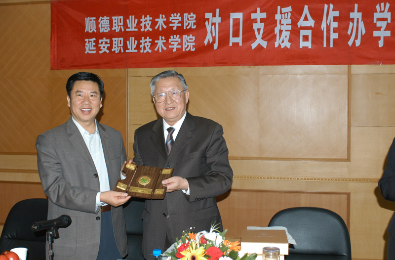 为贯彻落实《国务院关于大力发展职业教育的决定》中“积极开展城市对农村、东部对西部职业教育对口支援工作”的精神,实现东西部职业技术教育资源的共享,更好地推动区域经济社会的发展,9月21日至9月25日,我院院长陈智、副院长罗勇武,华南家电研究院常务副院长、顺德生产力促进中心主任欧阳志强,太阳集团tyc4633继续教育部主任、顺德电大副校长齐振彪,招生就业处处长储晓鸣,创业培训学院常务副院长周华,教务处欧阳丽,办公室工作人员蒋琳及广东技术师范学院高教职教研究所所长刘合群教授一行9人组成的教育考察团,到延安职业技术学院进行了为期5天的对口交流。延安市副市长冯继红,延安职业技术学院党委书记杨军宪、院长兰培英、副院长高兆宏、高思龙、高雅琴等领导和师生热情接待了考察团一行。