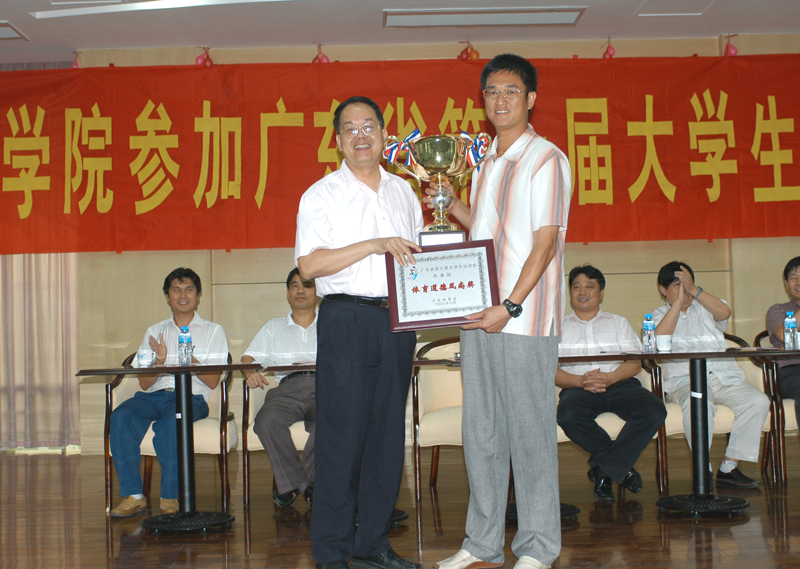 在刚结束不久的广东省第七届大学生运动会中,我院运动员取得了团体总分第六的佳绩,并且获得了体育道德风尚奖。为了感谢各位同学所做出的贡献,学院于9月6日在行政楼教工活动中心举行了表彰大会。学院副院长何锐连、纪委书记谭谦章及相关部门负责人和运动员参加了表彰大会。