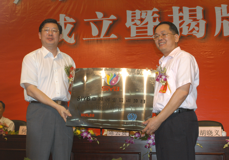 国家劳动和社会保障部副部长胡晓义向广东顺德创业培训学院授牌