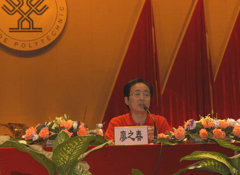 动员大会上,佛山市文化广电新闻出版局副局长、大型活动部副部长廖之春作了第十二届省运会动员讲话。他说,广东省第十二届运动会迎来了百年华诞,世纪盛会。它不仅是广东省体育队伍的一次大检阅,它还将推进全民健身运动的蓬勃开展,同时有力地促进广东省尤其是东道主佛山的各项经济建设与发展,充分体现佛山浓厚的文化底蕴。本届省运会筹委会以邓小平理论和‘三个代表’重要思想为指导,以科学发展观统领全局,围绕“精彩省运、活力佛山”的主题,实现“新省运、新佛山、新水平、新形象”的目标。他希望学院1300多名新生能严格遵守纪律,服从安排,听从指挥,展现大学生朝气蓬勃的精神面貌,营造良好的体育氛围。