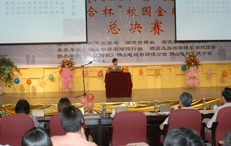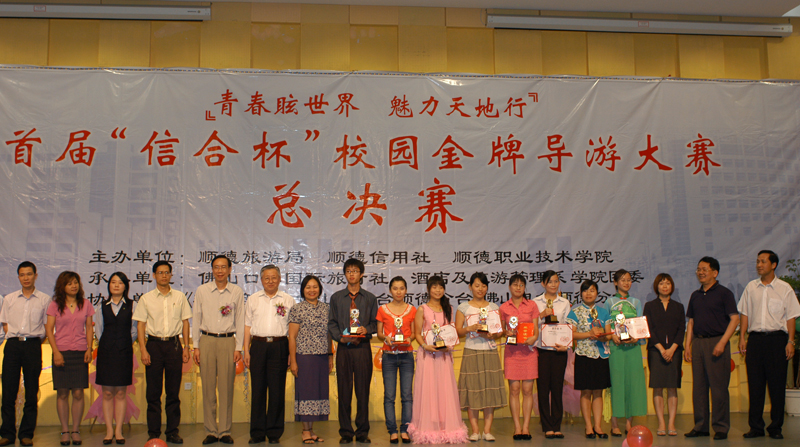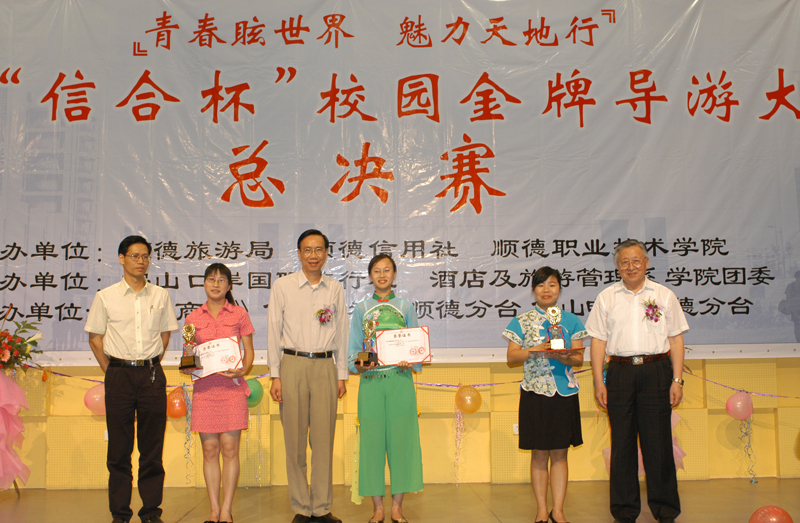6月13日晚,我院首届“信合杯”校园金牌导游大赛总决赛在学术报告厅隆重举行。原顺德市委常委、政协主席、学院顾问刘世宜,顺德旅游局局长陈伟尧,顺德信用社公司银行部总经理马列光,佛山口岸国际旅行社总经理陈佩芳等及我院院长陈智,副院长何锐连,纪委书记谭谦章,酒店及旅游管理系主任陈健、书记董国顺,学生处副处长甘慕仪及顺德各家旅行社代表出席了本次大赛,并担任了评委。酒店及旅游管理系的全体师生和全院各系学生代表观摩这次大赛。